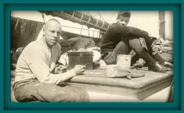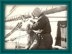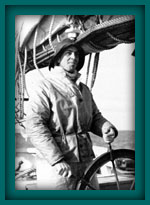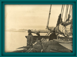 "Howdie" McCall aft with Ben Hazeltine at the wheel
