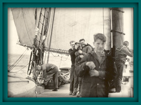 while others joke around by the mainmast. Photo by Thomas Wells,