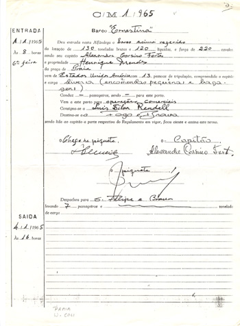 Carrying tons of pozzolana*, oil drums, lumber, and sacks of grain took their toll on the Ernestina. Her stern began to droop and her deck was worn down by the frequent loading and unloading of cargo. Henrique Mendes could no longer afford to keep her up; however, she was vital for inter-island communication and transportation. In 1963 Luiz Silva Randall, Governor of the islands and son-in-law of Henrique Mendes, put up most of the $25,000 spent on repairs to the ship thereby acquiring ownership of the vessel.