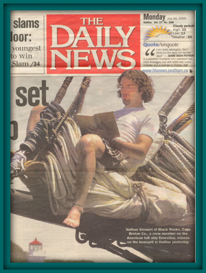 Taking a break during the Halifax event on the bowsprit of Ernestina.