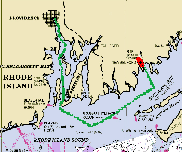 through Buzzards Bay to our berth in New