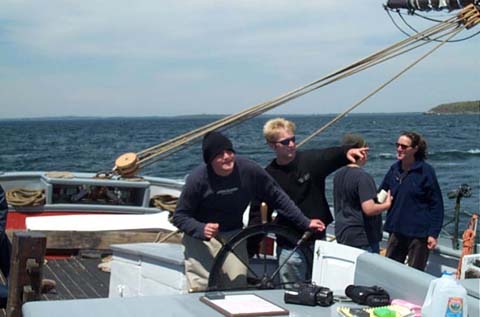 boom, hanging out on the after deck, aloft in the