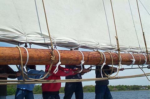 mains'l sheeted out, topping up the reefed