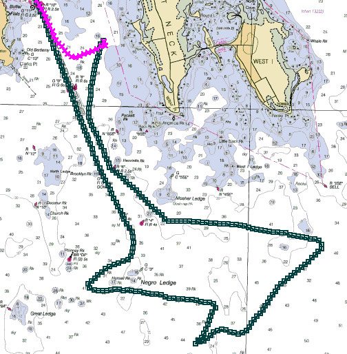 the green track from May 31st to anchor off Sconticut Neck and