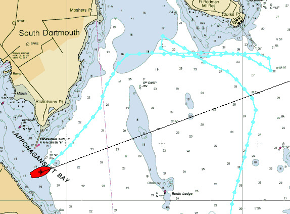 and after some tacks, struck our sails and set anchor in Apponagansett