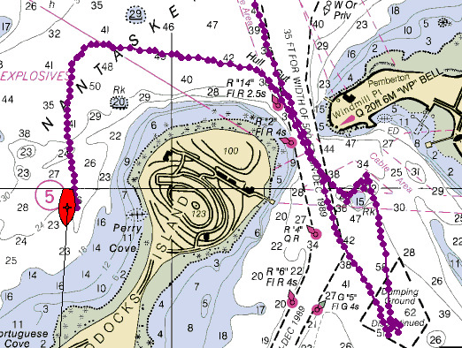 the many navigational aids of the Boston harbor Narrows.