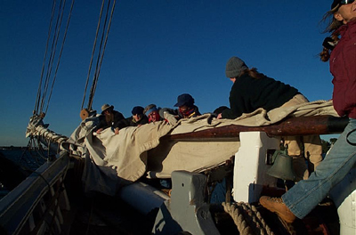 women were quick on their feet as we hoisted the foresail and