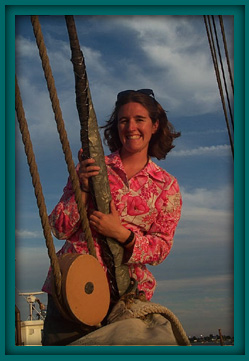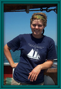 Kristen joined the ERNESTINA crew in September 2002, as a deckhand, and returned through June of the 2003 season as one of the Onboard Program Coordinators.  With serious dedication to teaching and making learning fun and  prior experience as a volunteer on the JOLLY ROVER II, and as an apprentice on MYSTIC WHALER, Kristen eagerly brought her professional teaching experience onboard sailing vessels doing experiential education.