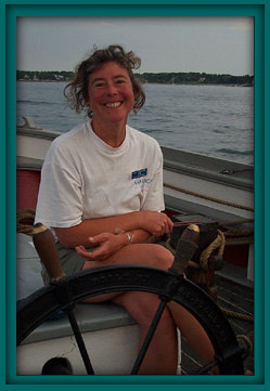 Amanda joined the crew as a Mate in the beginning of the 2001 season, and this year fills the role as one of Ernestina’s chief mates.  She came to the organization, highly recommended by Captain Amanda Madeira, whom she had sailed with in the 1980’s. A. Lake holds a 100-ton Near Coastal Master’s License with auxiliary sail endorsement.  In addition to her work with ERNESTINA, Amanda’s recent shipboard experiences include a trans-Atlantic voyage, which involved a circumnavigation of Iceland, on the 50’ cutter-rig BRENDAN’S ISLE.  She has also skippered a classic Concordia yawl, THISTLEDOWN, in Maine waters, and has sailed to the Arctic Circle twice in the past decade.  Her sailing career began when she joined the crew on the R/V REGINA MARIS, a wooden barkentine studying Humpback whales in the Caribbean and North Atlantic.