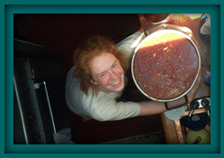 Kate began her culinary career onboard ERNESTINA, when she joined the ship’s crew in June 2003.  During a three-year break from school, she decided to travel and spend sometime sailing onboard tall-ships.  Previously, she worked onboard HARVEY GAMAGE, CLEARWATER and the ADVENTURESS, acquiring much deck experience, but looked to broaden her skills, giving cooking a try.  Kate also took on the role of Medical Officer, putting to good use her training as a Wilderness EMT.