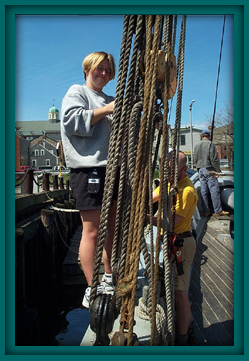 Eventually everyone returns to the Schooner ERNESTINA!!  Heidi sailed aboard as a mate in 1998 and 1999, and returned from the West Coast in July 2003 to sail as Mate and enjoy plying the New England waters once again onboard the historic ERNESTINA.