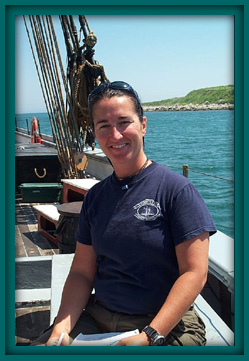 Gretchen joined the Schooner Ernestina in July 2003, as an Onboard Program Coordinator. Growing up in Maine, Gretchen spent much of her youth sailing, and loves using boats as a teachable classroom.  She began her professional career as Sailor/Educator at the Agamenticus Yacht Club in York, Maine as an instructor and worked her way up to become the Head Instructor.  She has also worked as a Mate for Sail Caribbean, a Deckhand for Sea Education Association, and as Captain of the CARLYN for Salish Sea Expeditions.